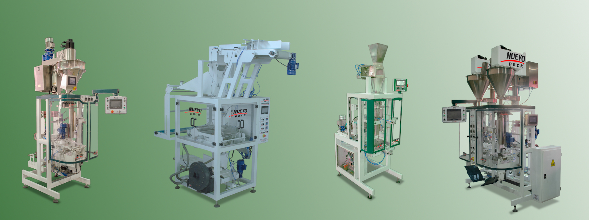 Las máquinas NUEVO PACK son el producto de más de 40 años de experiencia en el área empaque, todos los modelos son equipos completamente automáticos. Un PLC de alta presición y velocidad controla los movimientos mecánicos y los actuadores neumáticos, brindando seguridad en los procesos y la calidad en el producto final empaquetado. Máquinas adaptadas a la necesidad y configuración que solicite el cliente.